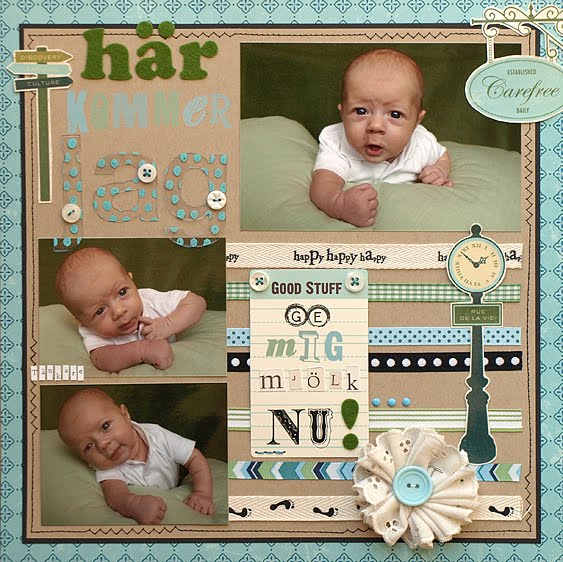 Michelle: Easy not to use flowers....I am most happy about this layout because I finally used some of the Love Elsie I had been hoarding! And mixed it up with some American Crafts rubons!